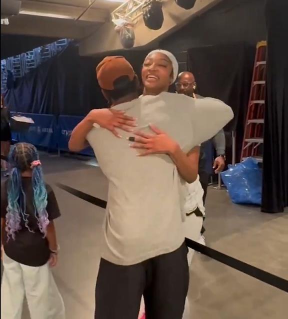 欧文带女儿看WNBA&赛后在球员通道与里斯拥抱 后者今日砍14分11板