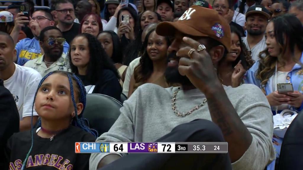 08月18日讯 欧文今日带女儿在洛杉矶现场观战了芝加哥天空90-86击败洛杉矶火花的WNBA常规赛。